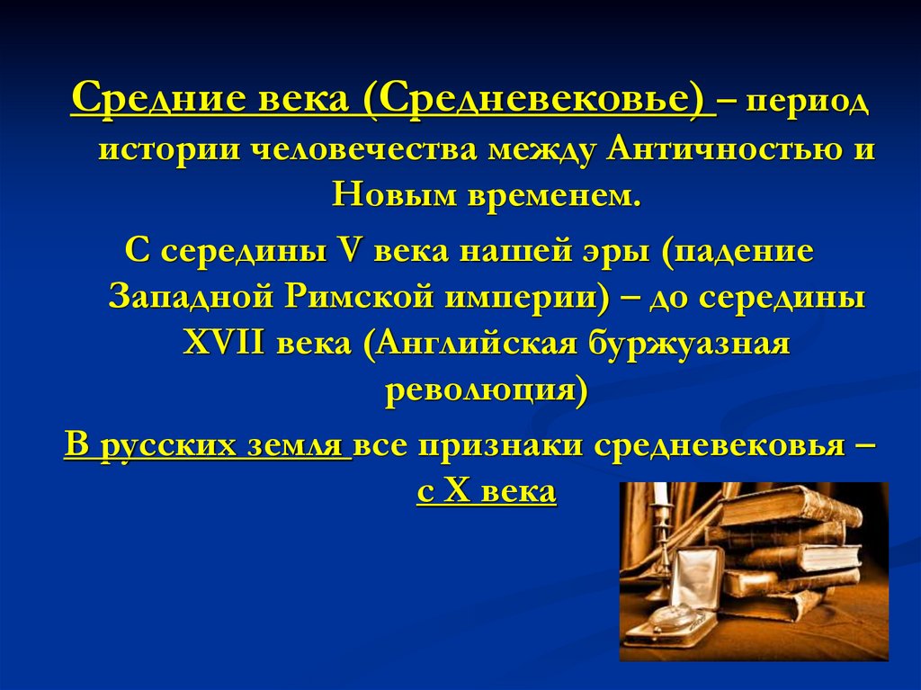 Средние века (Средневековье) – периодистории человечества между Античностью и