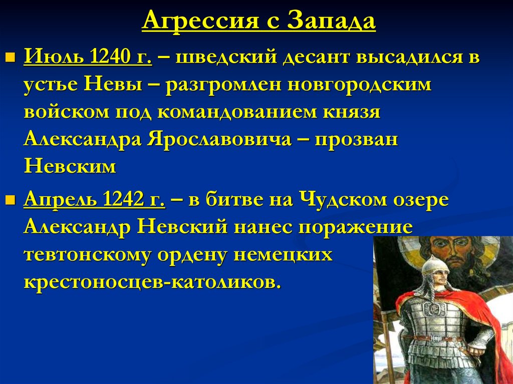 Агрессия с ЗападаИюль 1240 г. – шведский десант высадился в