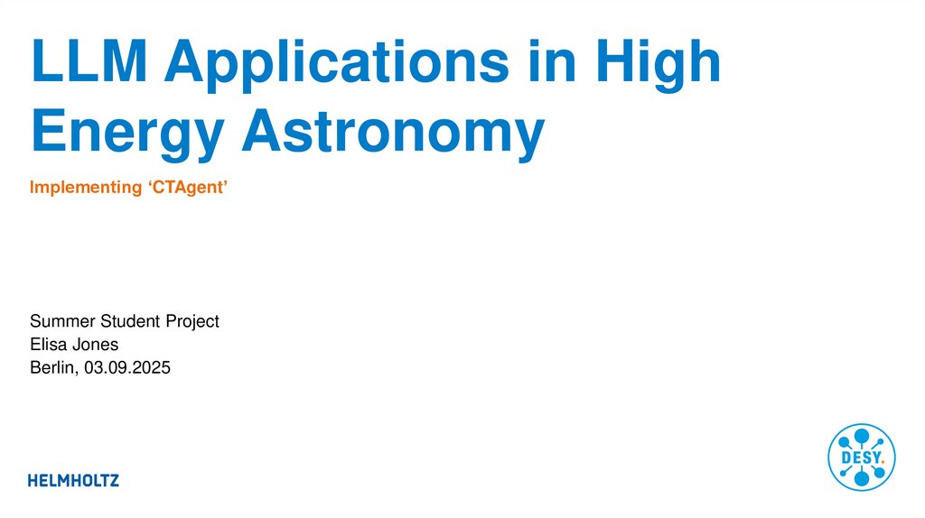 DESY. | LLM Applications in High Energy Astronomy | Elisa Jones, 03.09.2025