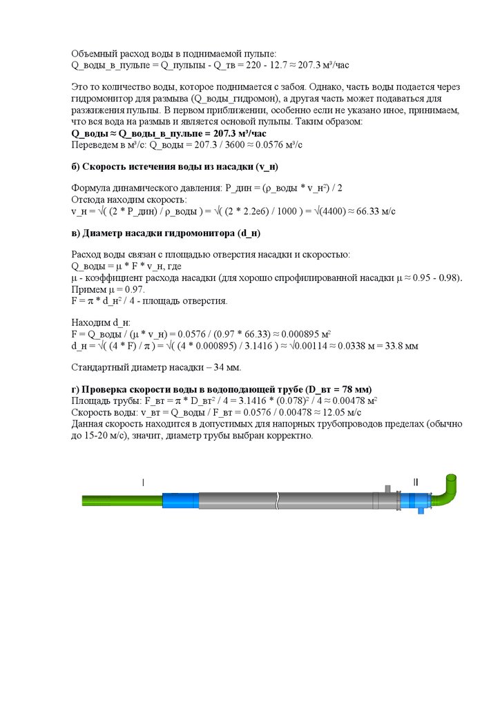 г) Проверка скорости воды в водоподающей трубе (D_вт = 78 мм)
