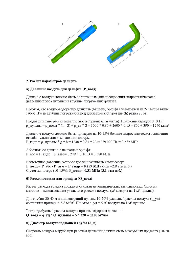 2. Расчет параметров эрлифтаа) Давление воздуха для эрлифта (P_возд)