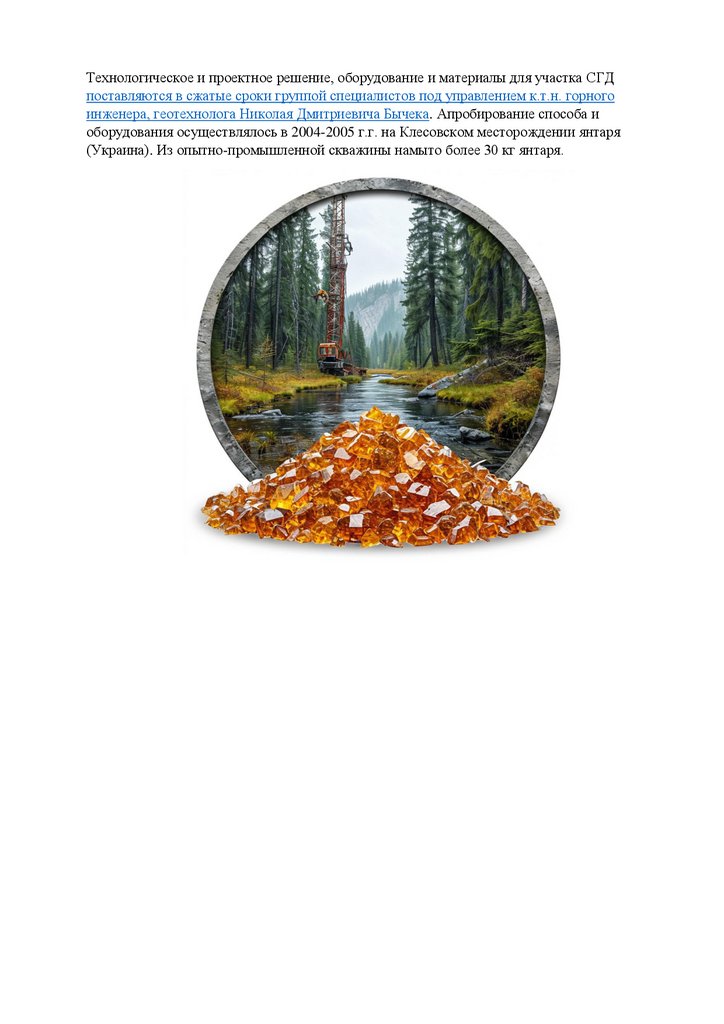 Технологическое и проектное решение, оборудование и материалы для участка СГДпоставляются в сжатые сроки группой специалистов под управлением к.т.н. горного