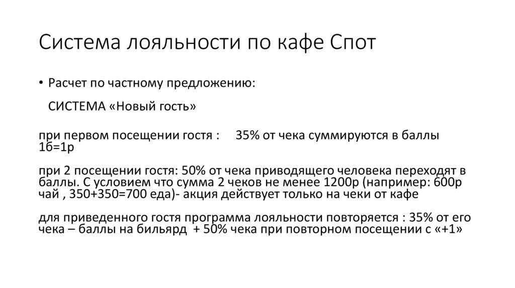 • Расчет по частному предложению:СИСТЕМА «Новый гость»