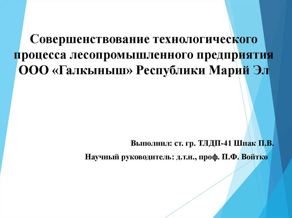 Совершенствование технологическогопроцесса лесопромышленного предприятия