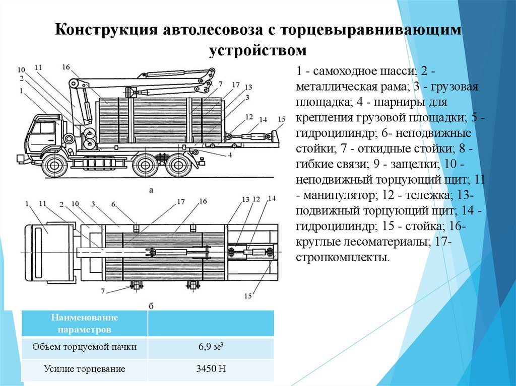Конструкция автолесовоза с торцевыравнивающимустройством