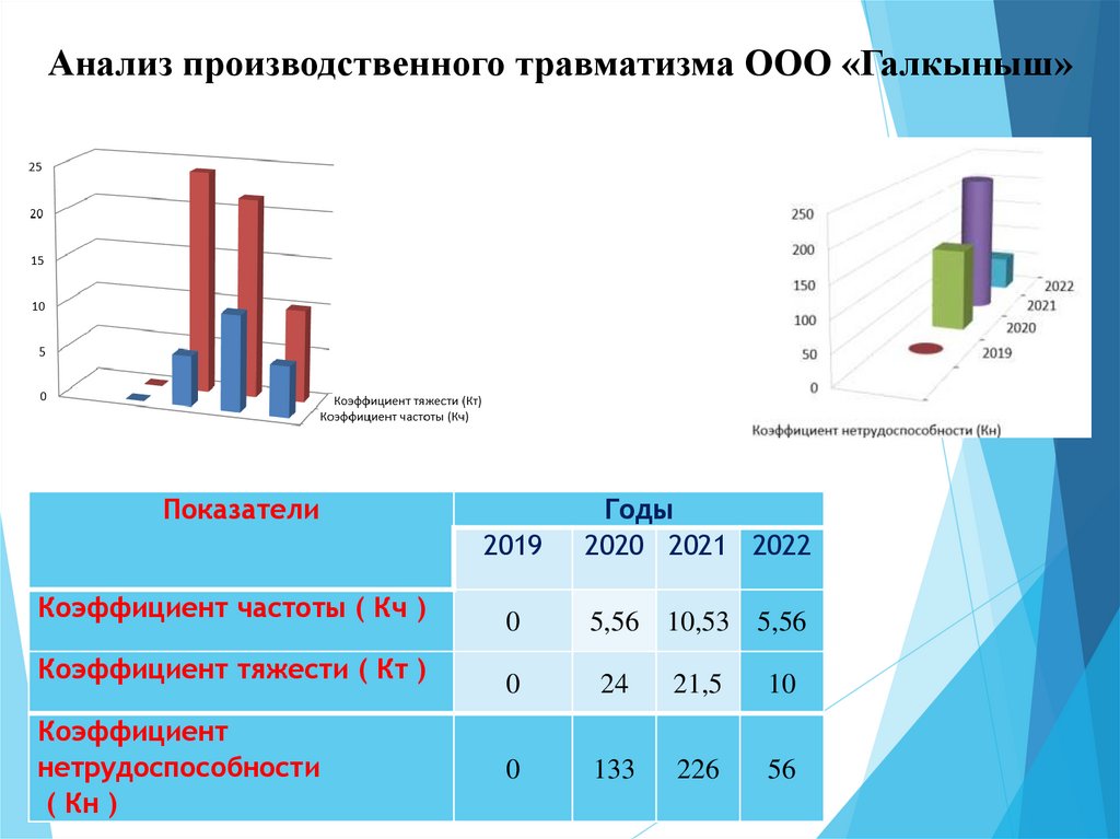Анализ производственного травматизма ООО «Галкыныш»Показатели