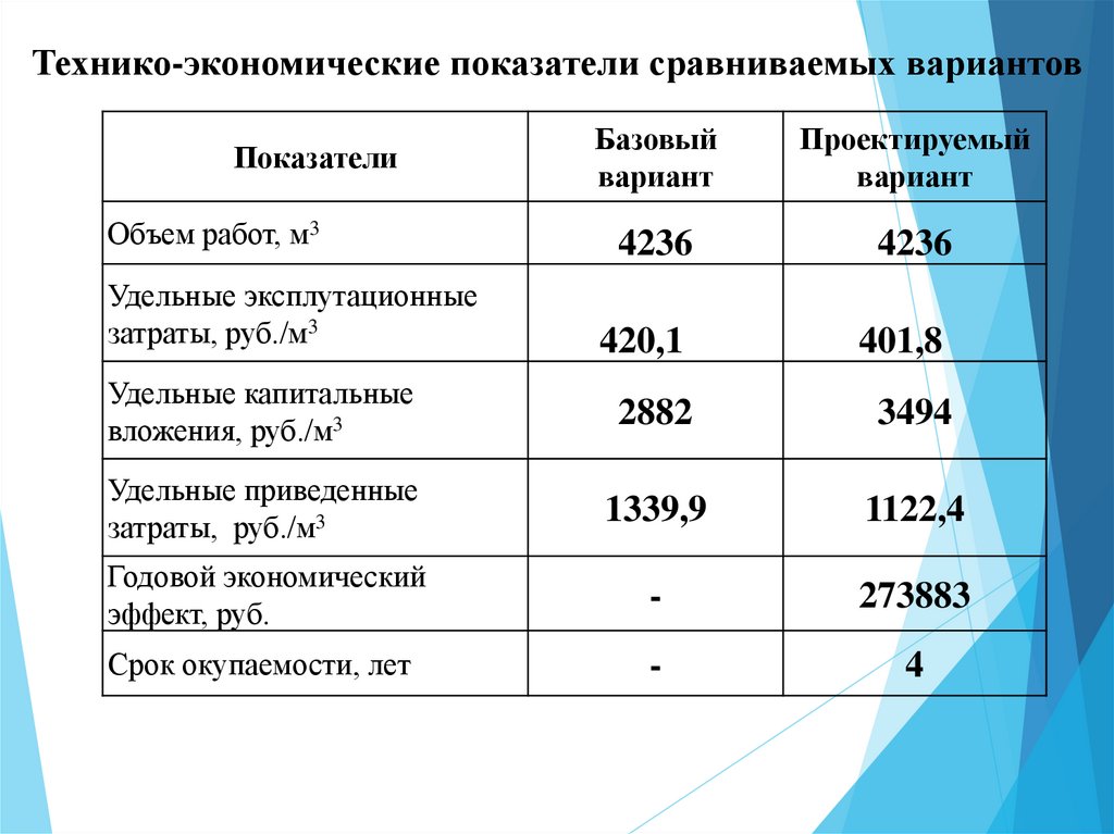 Технико-экономические показатели сравниваемых вариантовБазовый