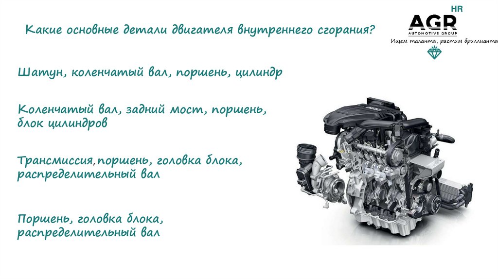 HRКакие основные детали двигателя внутреннего сгорания?