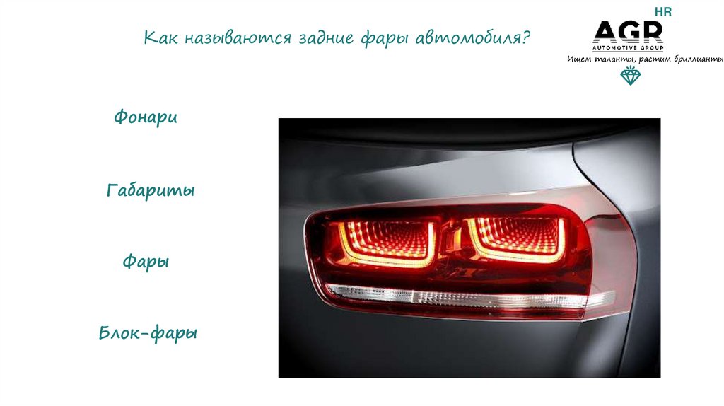 HRКак называются задние фары автомобиля?