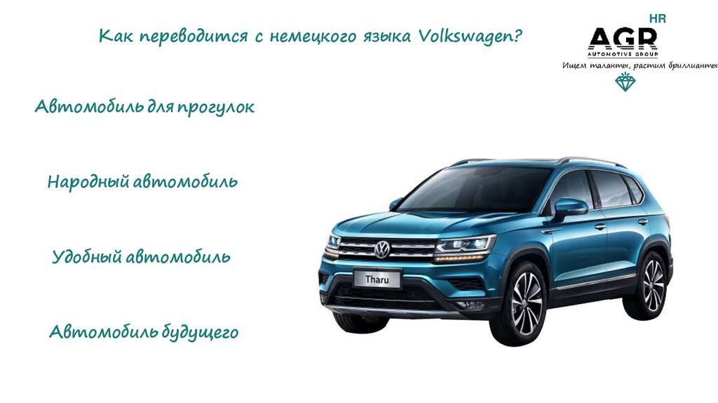 Как переводится с немецкого языка Volkswagen?HR