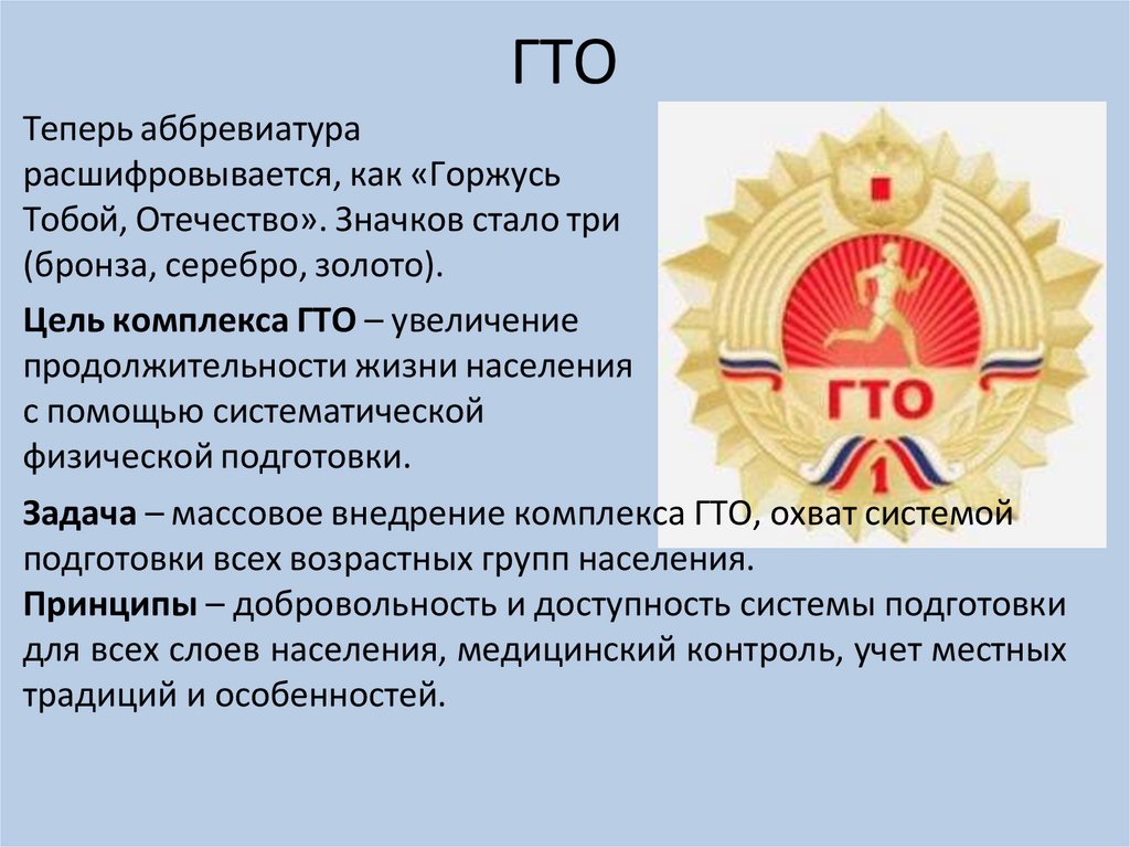 Цель комплекса ГТО – увеличение