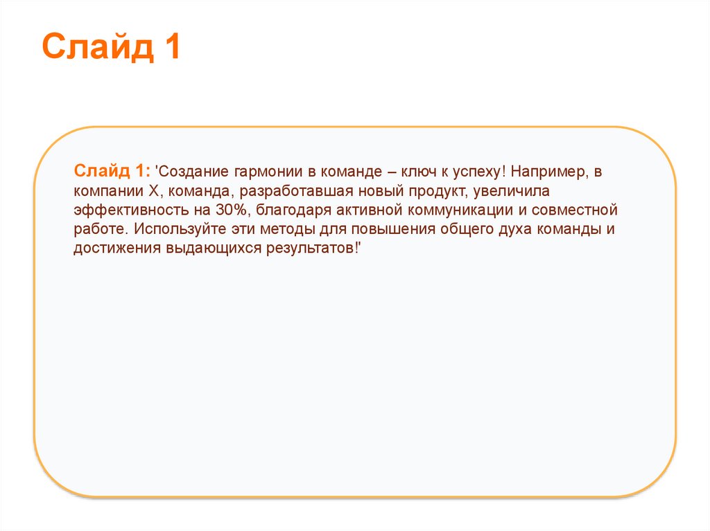 Слайд 1Слайд 1: 'Создание гармонии в команде – ключ к успеху! Например, в