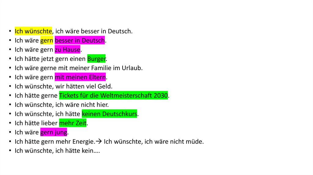• Test• Wiederholung: Wünsche mit Konjunktiv II (hätte, wäre, würde)