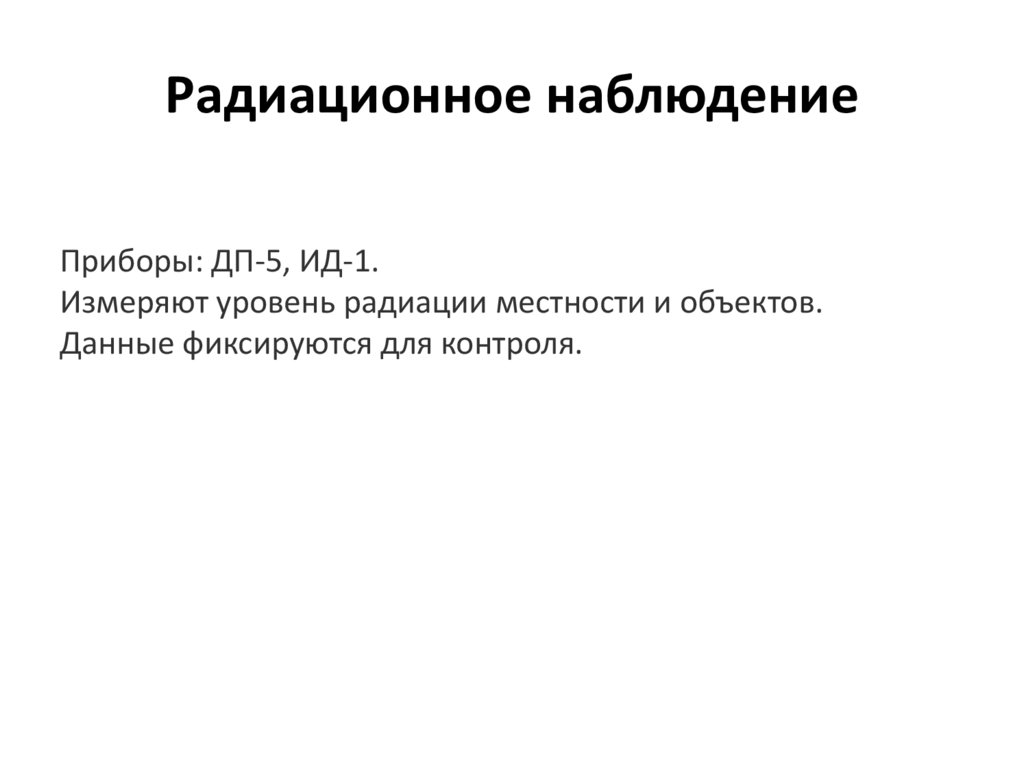 Радиационное наблюдениеПриборы: ДП-5, ИД-1.