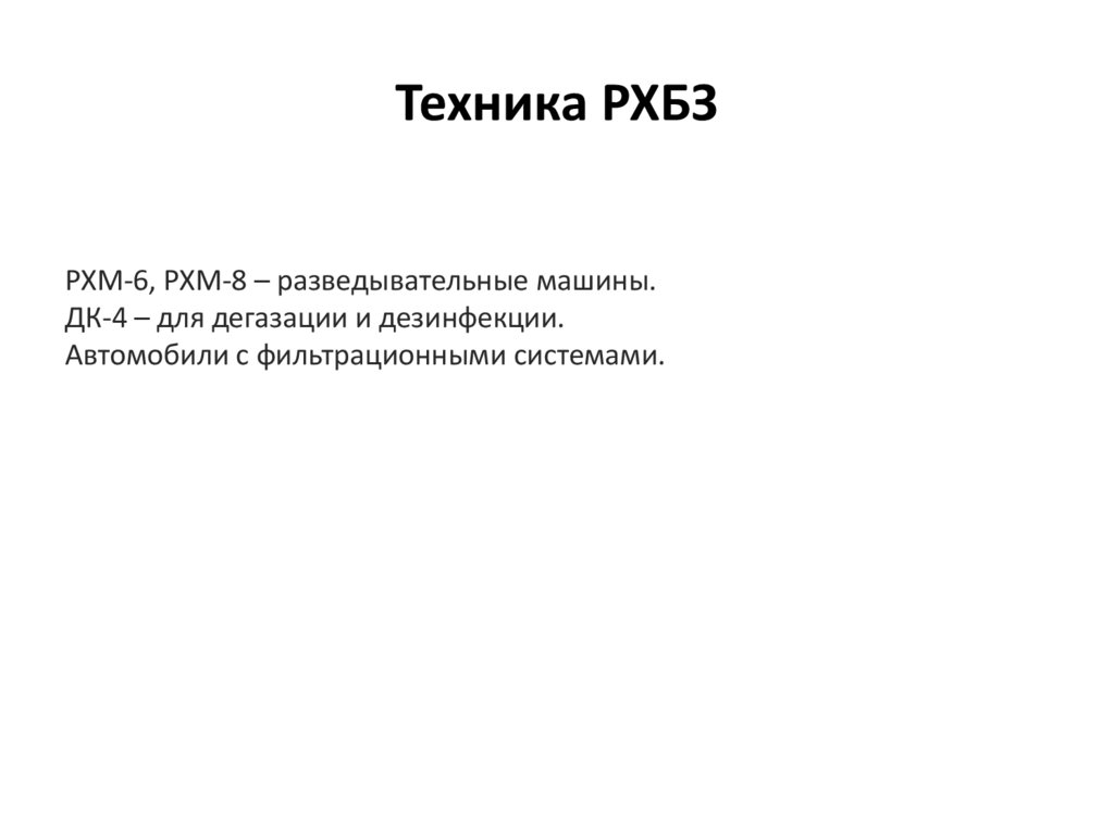 Техника РХБЗРХМ-6, РХМ-8 – разведывательные машины.