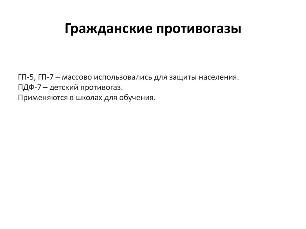 Гражданские противогазыГП-5, ГП-7 – массово использовались для защиты населения.