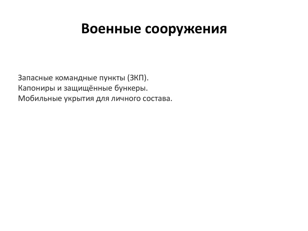 Военные сооруженияЗапасные командные пункты (ЗКП).