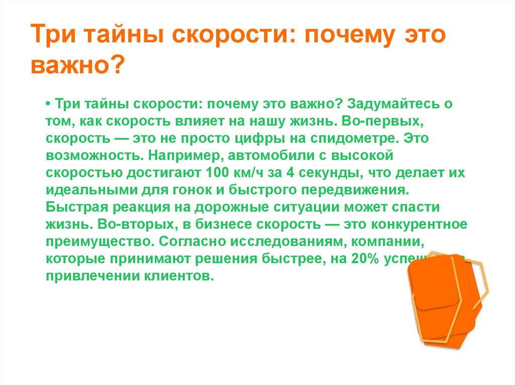 • Три тайны скорости: почему это важно? Задумайтесь о