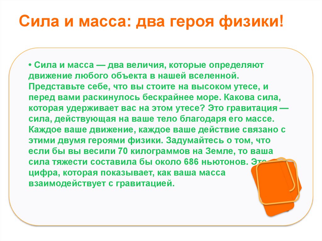 Сила и масса: два героя физики!• Сила и масса — два величия, которые определяют