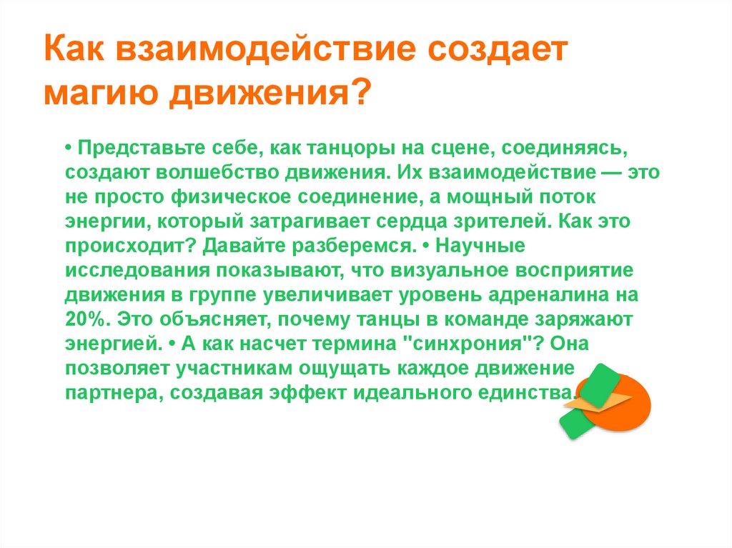 • Представьте себе, как танцоры на сцене, соединяясь,
