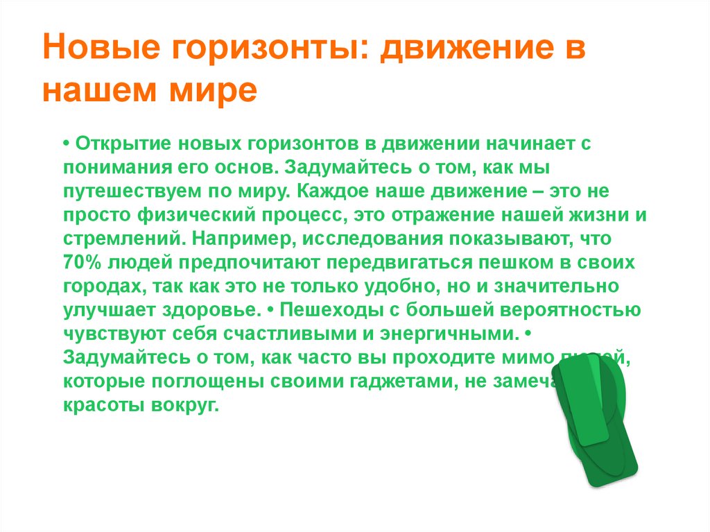 улучшает здоровье. • Пешеходы с большей вероятностью