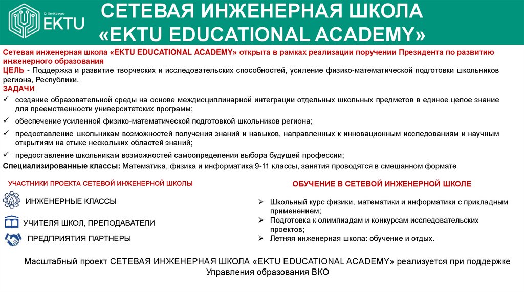 СЕТЕВАЯ ИНЖЕНЕРНАЯ ШКОЛА«EKTU EDUCATIONAL ACADEMY»
