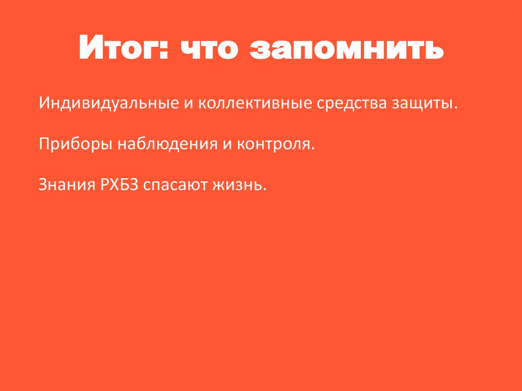 Итог: что запомнитьИндивидуальные и коллективные средства защиты.