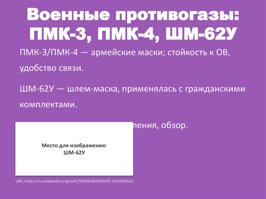 Военные противогазы:ПМК-3, ПМК-4, ШМ-62У