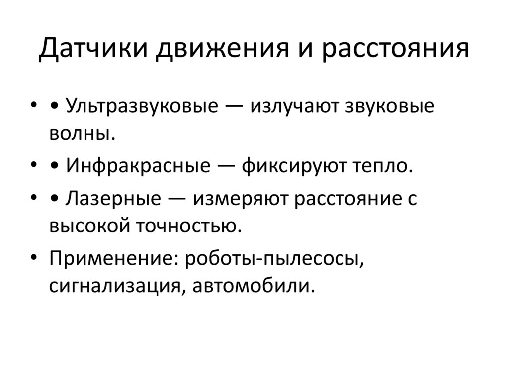 Датчики движения и расстояния• • Ультразвуковые — излучают звуковые