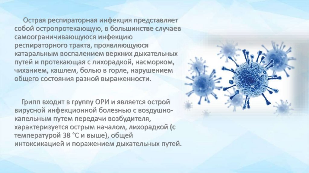 Острая респираторная инфекция представляетсобой остропротекающую, в большинстве случаев