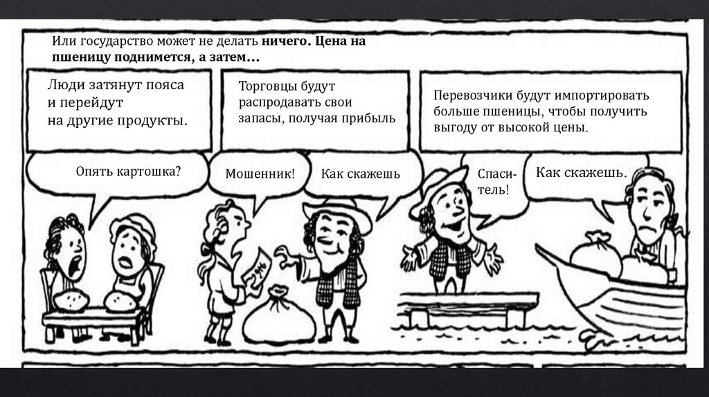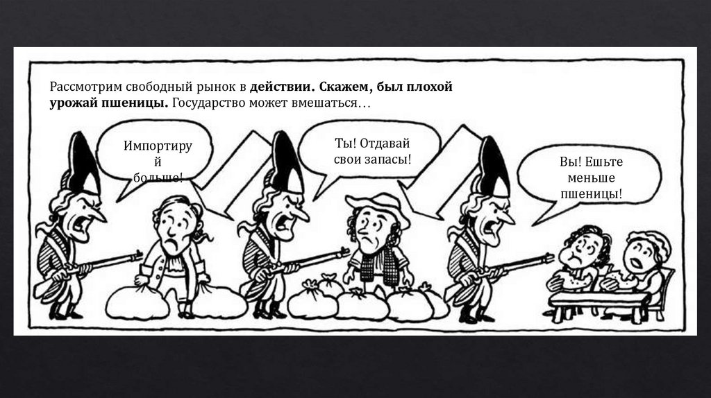 Рассмотрим свободный рынок в действии. Скажем, был плохойурожай пшеницы. Государство может вмешаться…