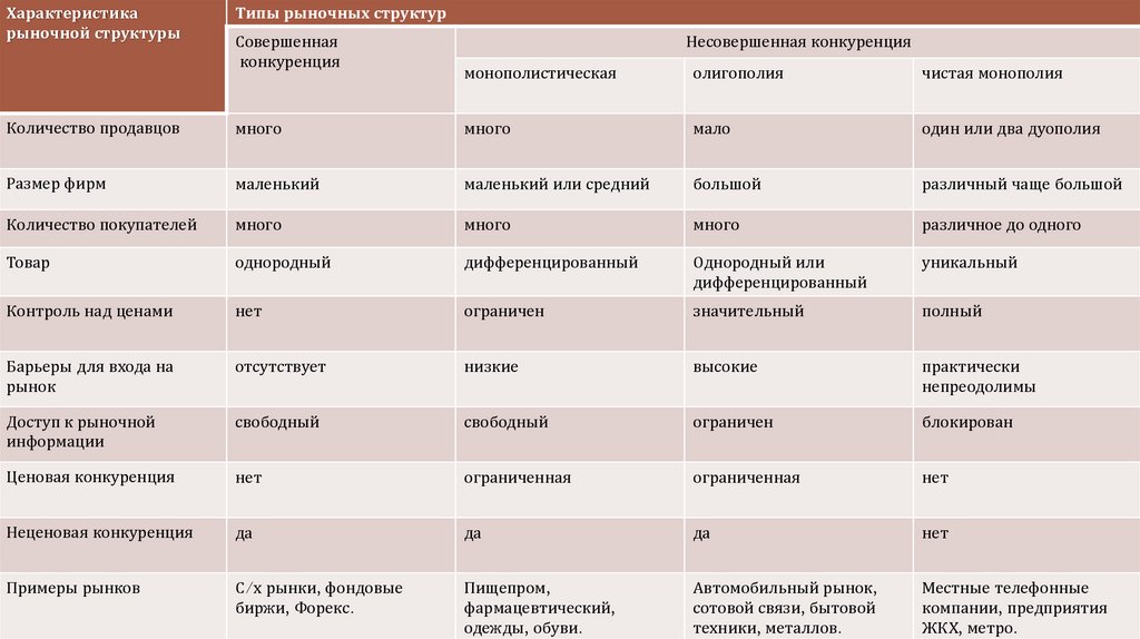 Типы рыночных структур