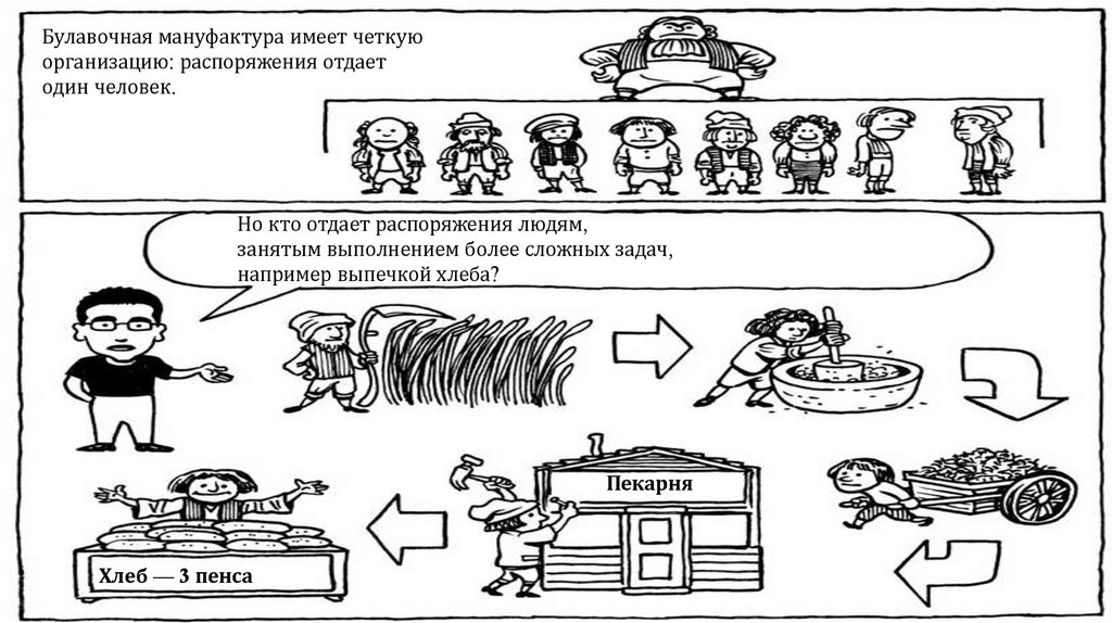Булавочная мануфактура имеет четкуюорганизацию: распоряжения отдает