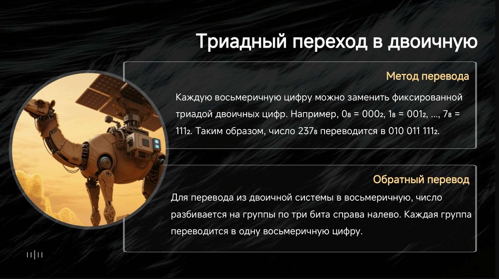 триадой двоичных цифр. Например, 0₈ = 000₂, 1₈ = 001₂, ..., 7₈ =