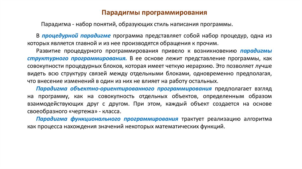 Развитие процедурного программирования привело к возникновению парадигмы