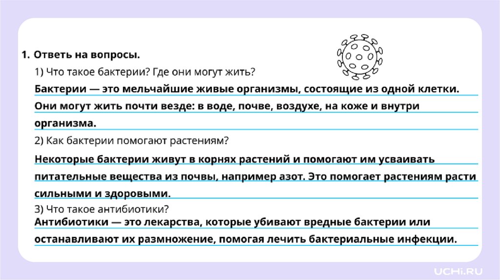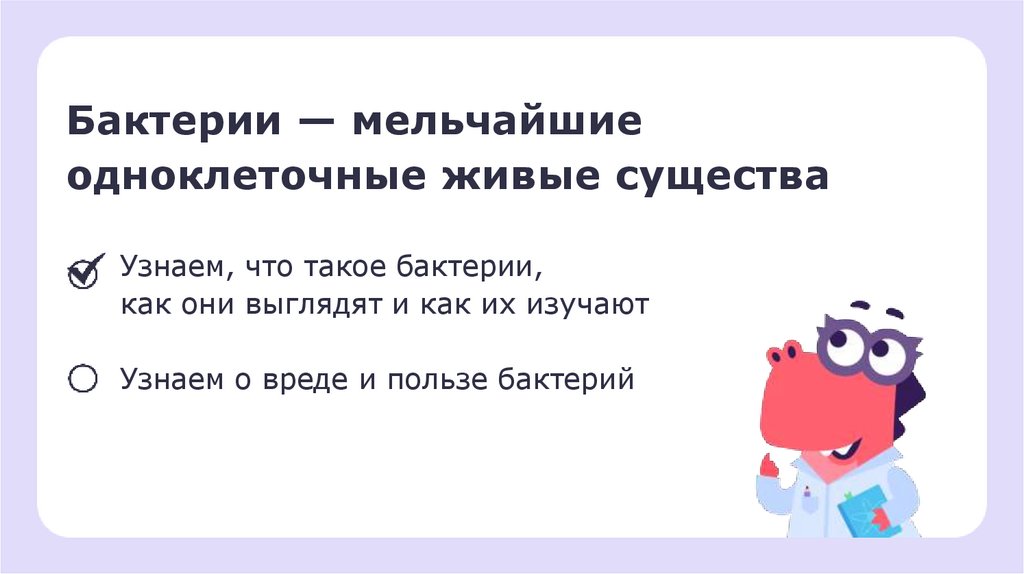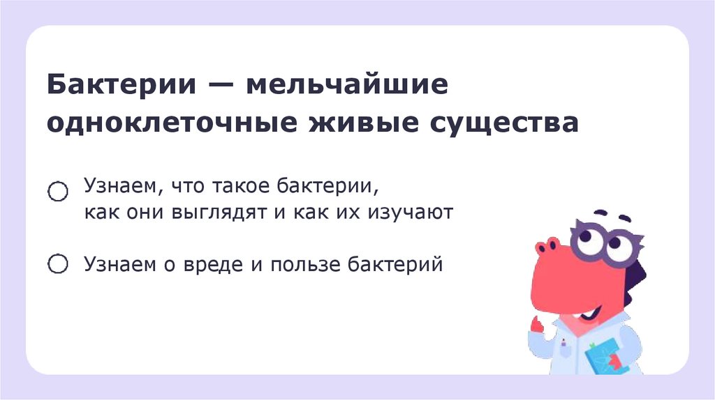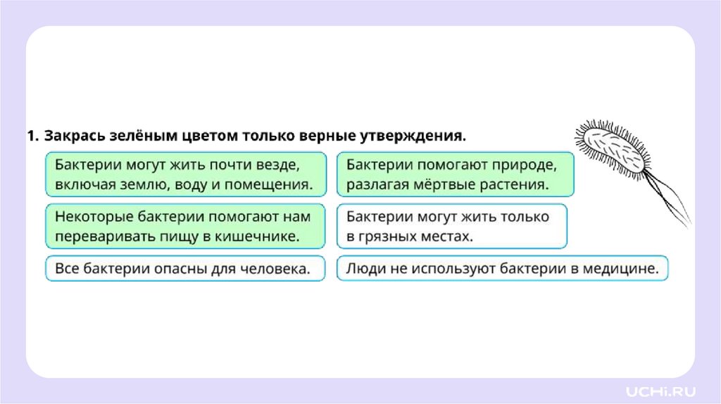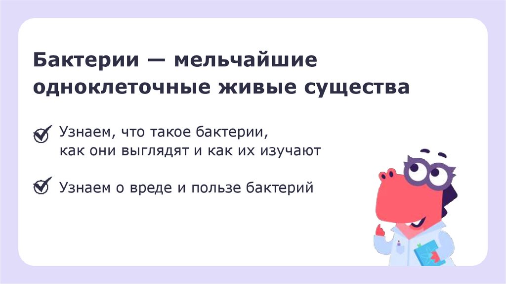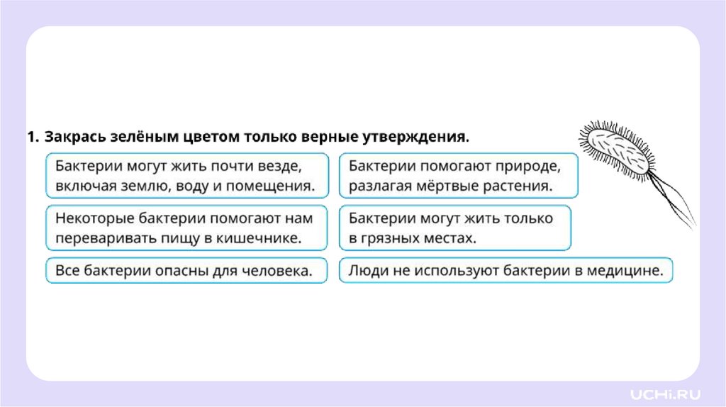 Бактерии – мельчайшие одноклеточные живые существа, 3 класс
