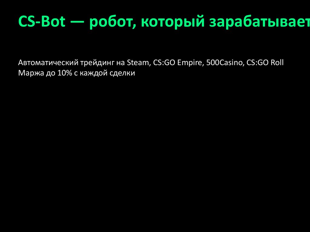 CS-Bot — робот, который зарабатываетАвтоматический трейдинг на Steam, CS:GO Empire, 500Casino, CS:GO Roll