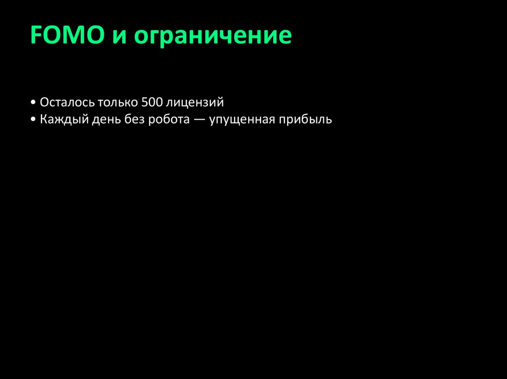 FOMO и ограничение• Осталось только 500 лицензий