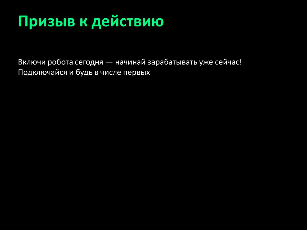 Призыв к действиюВключи робота сегодня — начинай зарабатывать уже сейчас!