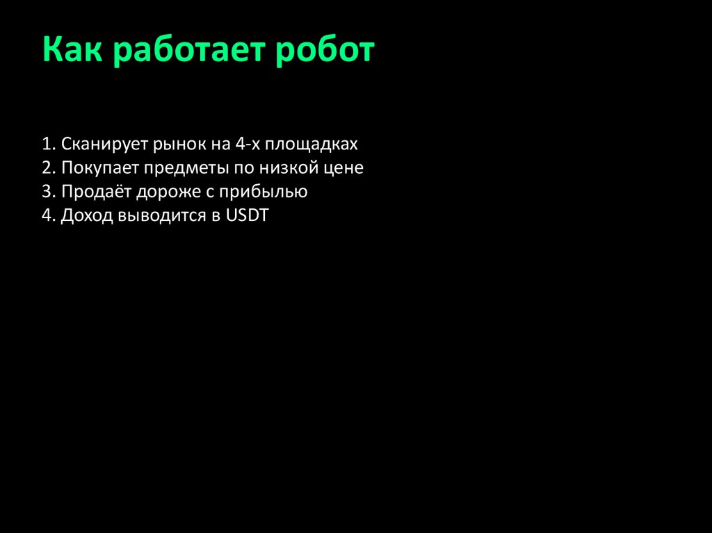Как работает робот1. Сканирует рынок на 4-х площадках