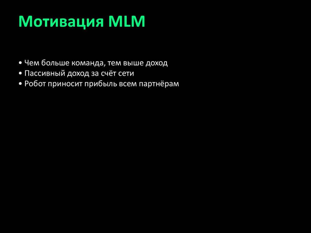 Мотивация MLM• Чем больше команда, тем выше доход