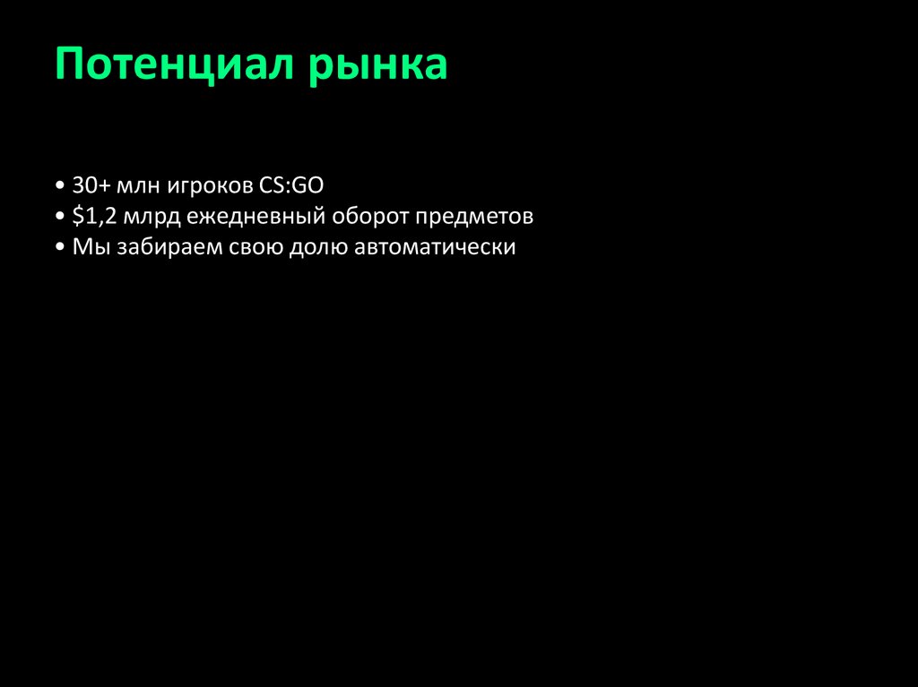 Потенциал рынка• 30+ млн игроков CS:GO