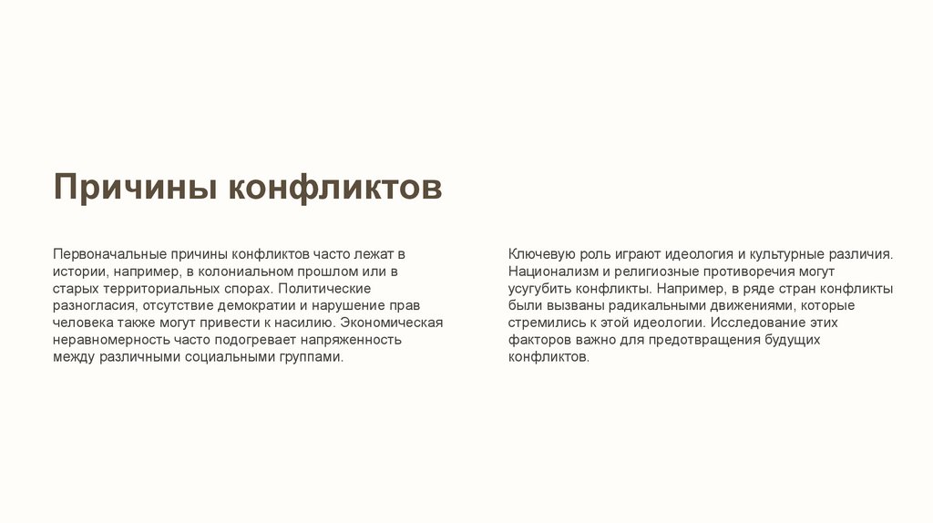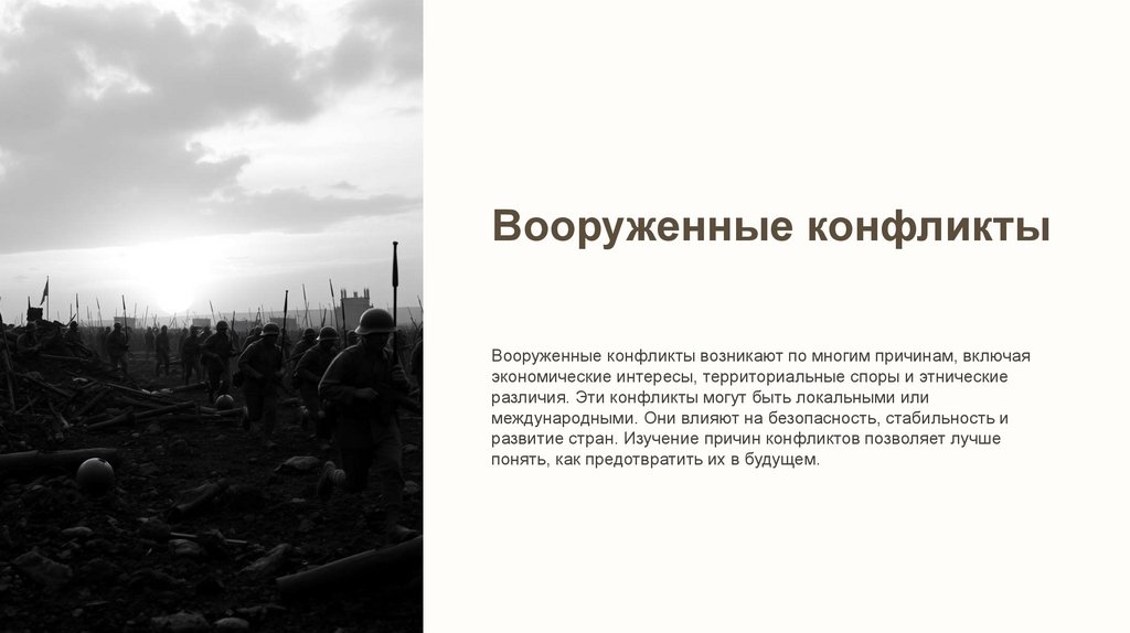 Вооруженные конфликтыВооруженные конфликты возникают по многим причинам, включая