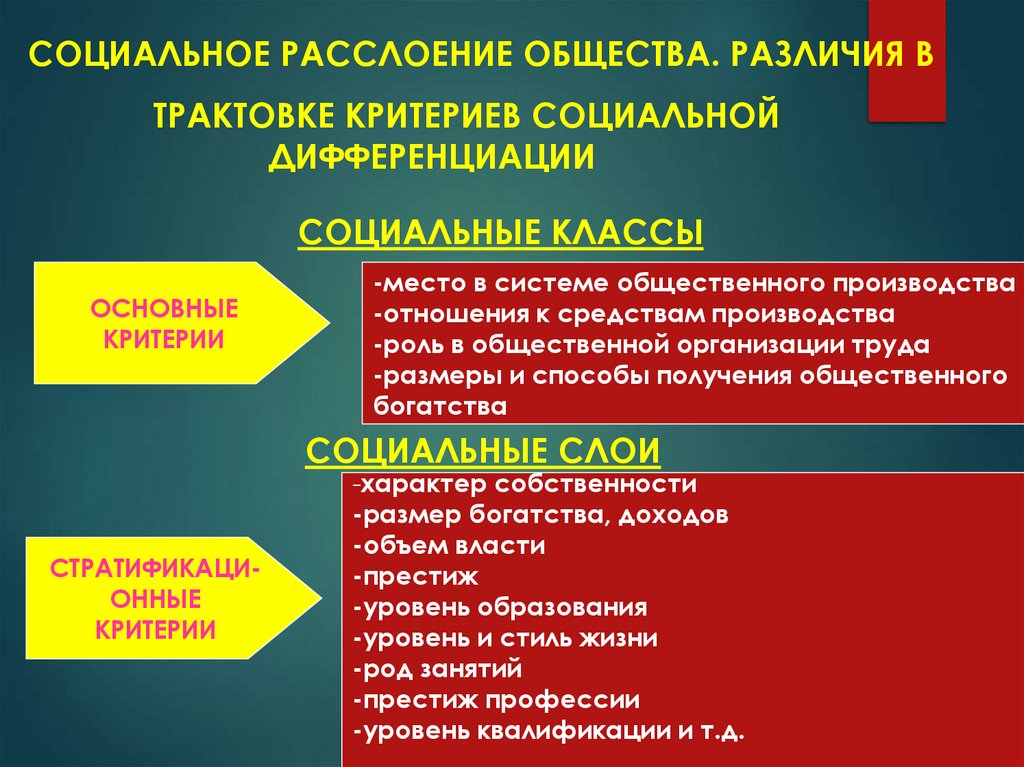 СОЦИАЛЬНОЕ РАССЛОЕНИЕ ОБЩЕСТВА. РАЗЛИЧИЯ ВТРАКТОВКЕ КРИТЕРИЕВ СОЦИАЛЬНОЙ
