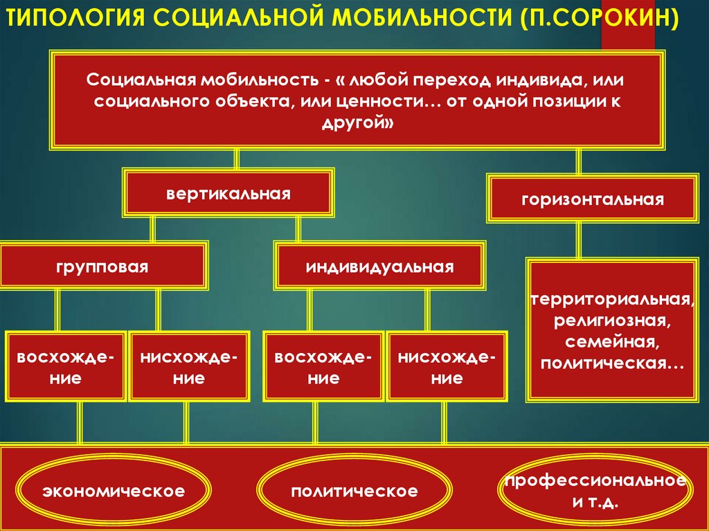 ТИПОЛОГИЯ СОЦИАЛЬНОЙ МОБИЛЬНОСТИ (П.СОРОКИН)Социальная мобильность - « любой переход индивида, или
