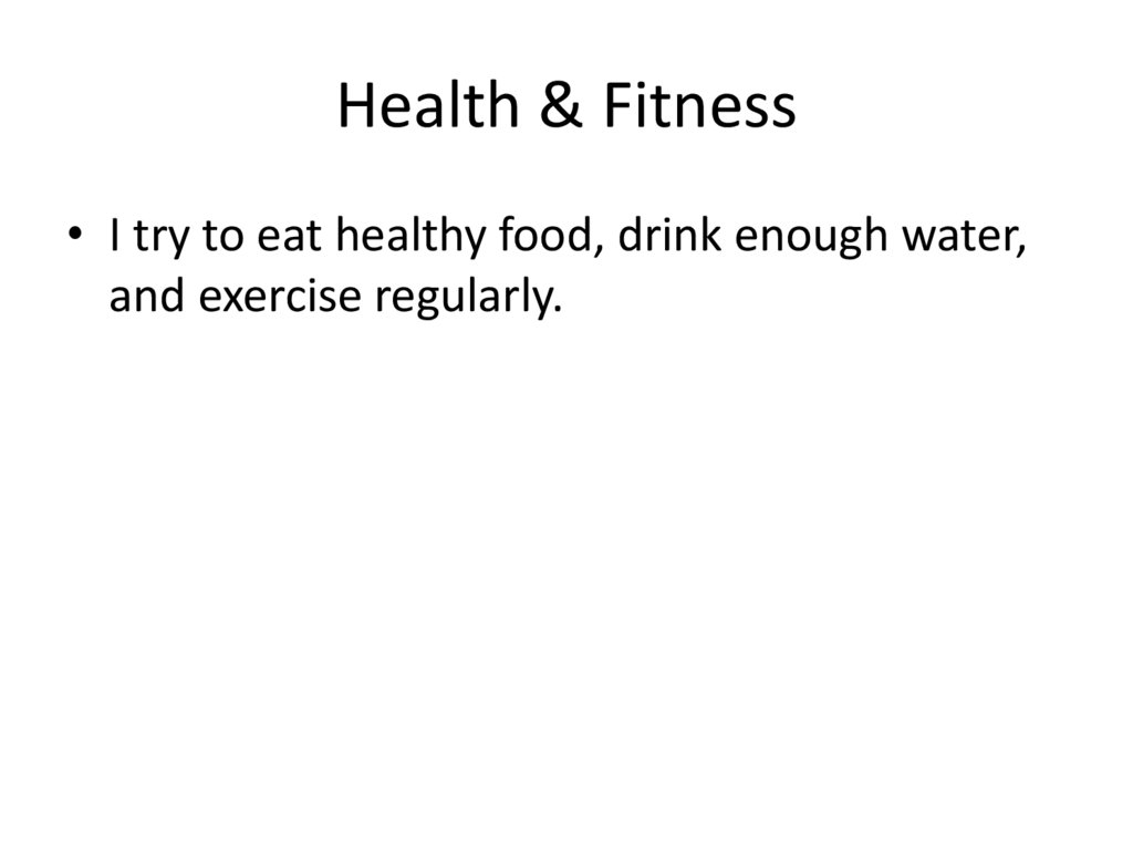 Health & Fitness• I try to eat healthy food, drink enough water,