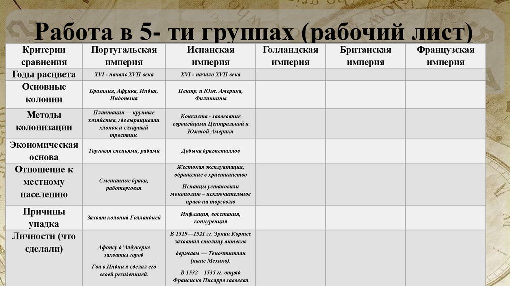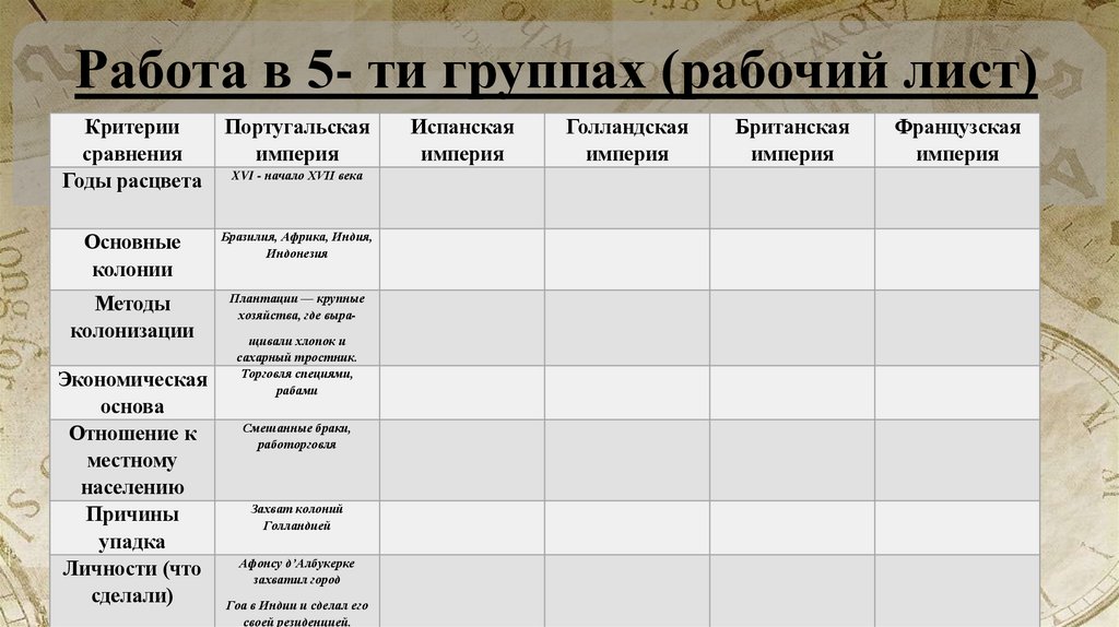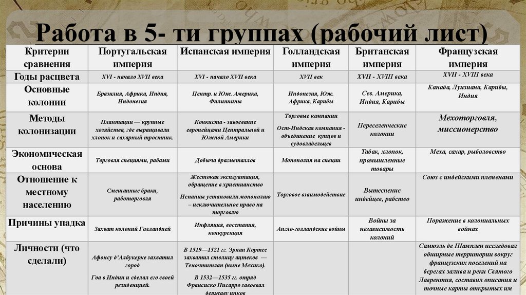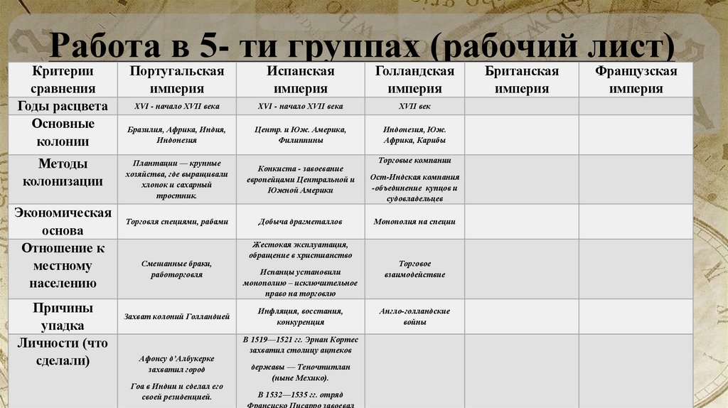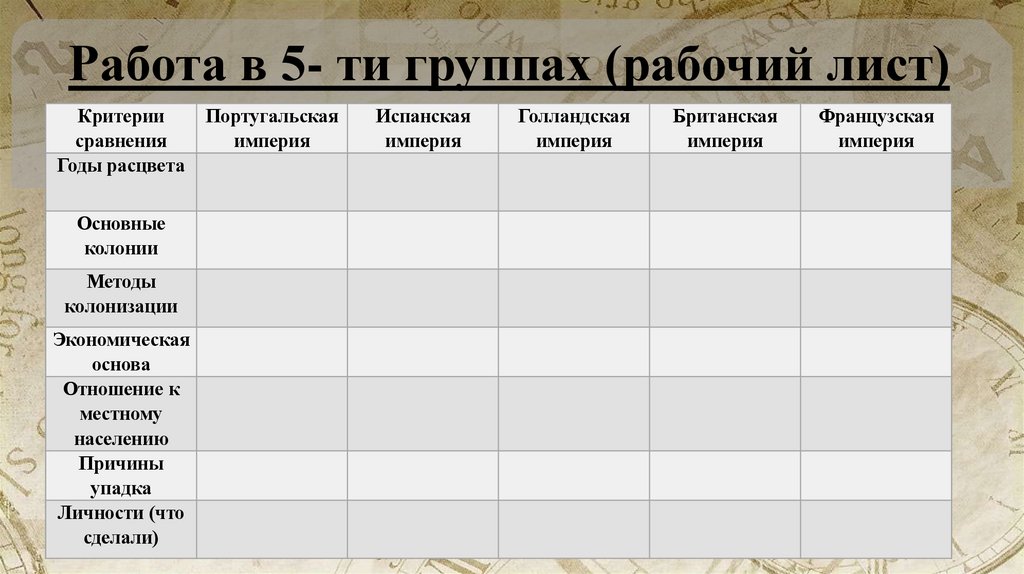 Цель урока: сформировать представление околониальных империях, о действиях европейцев в