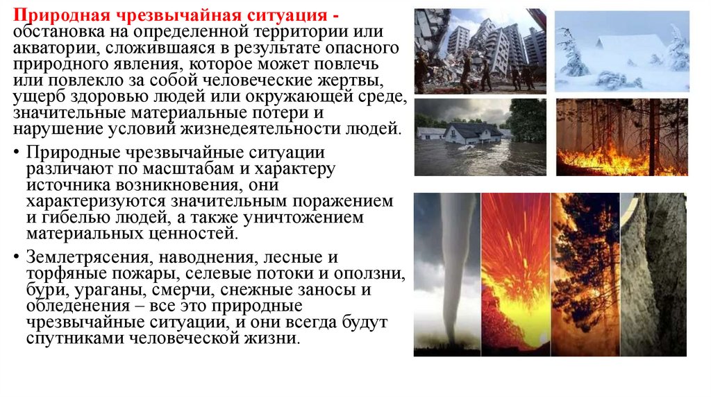 Природная чрезвычайная ситуация обстановка на определенной территории илиакватории, сложившаяся в результате опасного