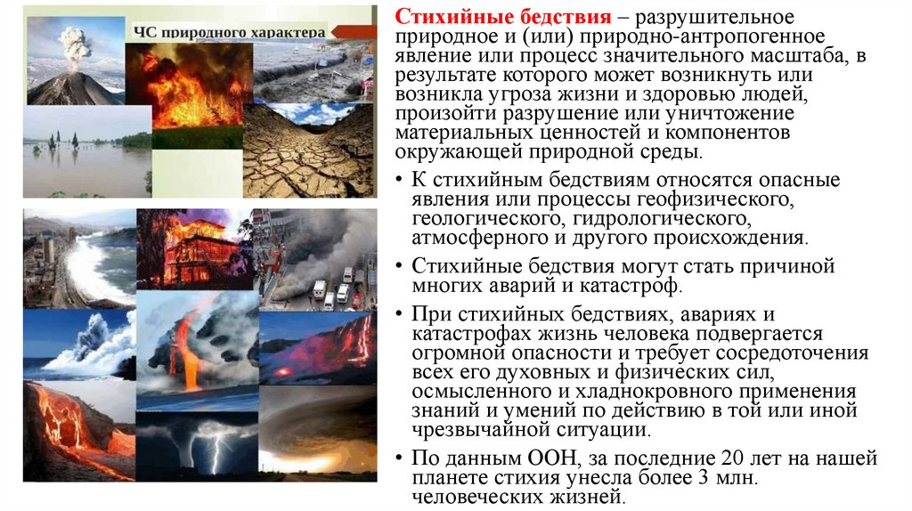Стихийные бедствия – разрушительноеприродное и (или) природно-антропогенное
