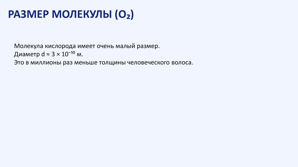 РАЗМЕР МОЛЕКУЛЫ (O₂)Молекула кислорода имеет очень малый размер.